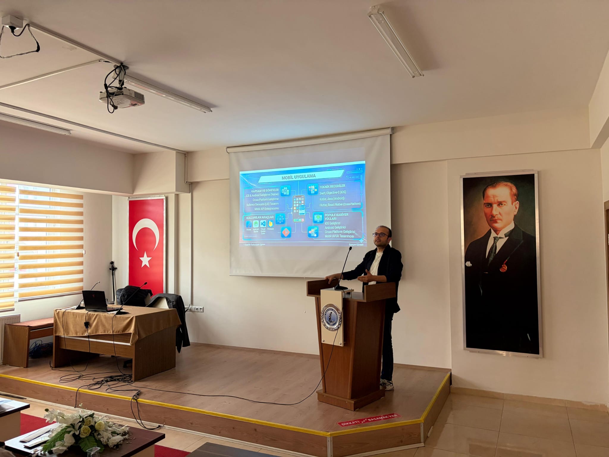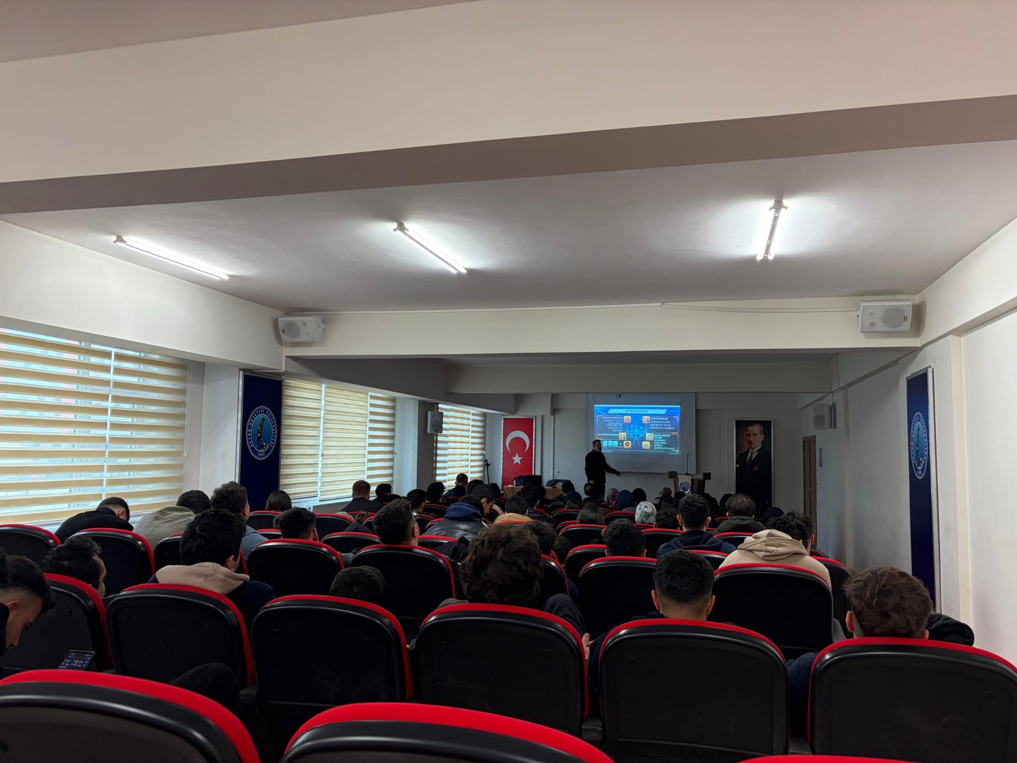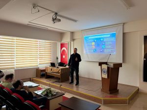 Öğr. Gör. Ahmet Ertuğrul, bilişim sektöründe ağ uzmanlığının iş hayatında kritik öneme sahip olduğunu belirtti. Bilgisayar programcılığı eğitiminin kapsamına ilişkin öğrencilere bilgi veren Ertuğrul, siber güvenlik alanındaki kariyer yollarını anlattı. Siber güvenlikte sistem mimarileri, teknik yazılımlar ve görev tanımlarına değinen Ertuğrul, ağ sistemlerinin çalışma prensipleri ile bilgisayar donanımı konularındaki teknik detayları aktardı.