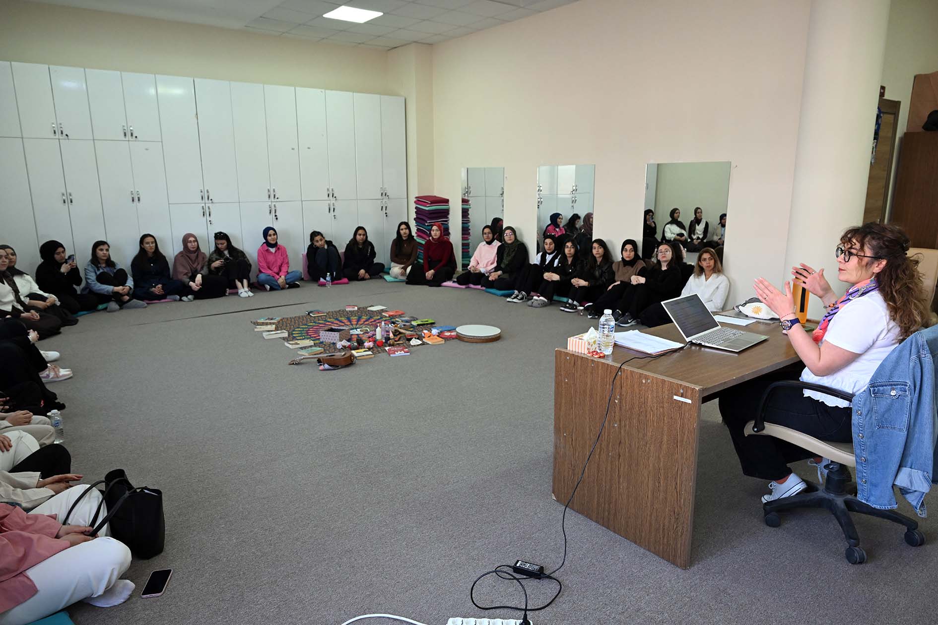 Afyon MYO Çocuk Gelişimi Uygulama Atölyesinde düzenlenen etkinlikte; Eğitim Fakültesi Temel Eğitim Bölümü Dr. Öğretim Üyesi Merve Arabacı, Afyon MYO Çocuk Gelişimi Programı öğrencileriyle bir araya gelerek, masal anlatıcılığı hakkında teorik ve uygulamalı olarak bilgi paylaştı.