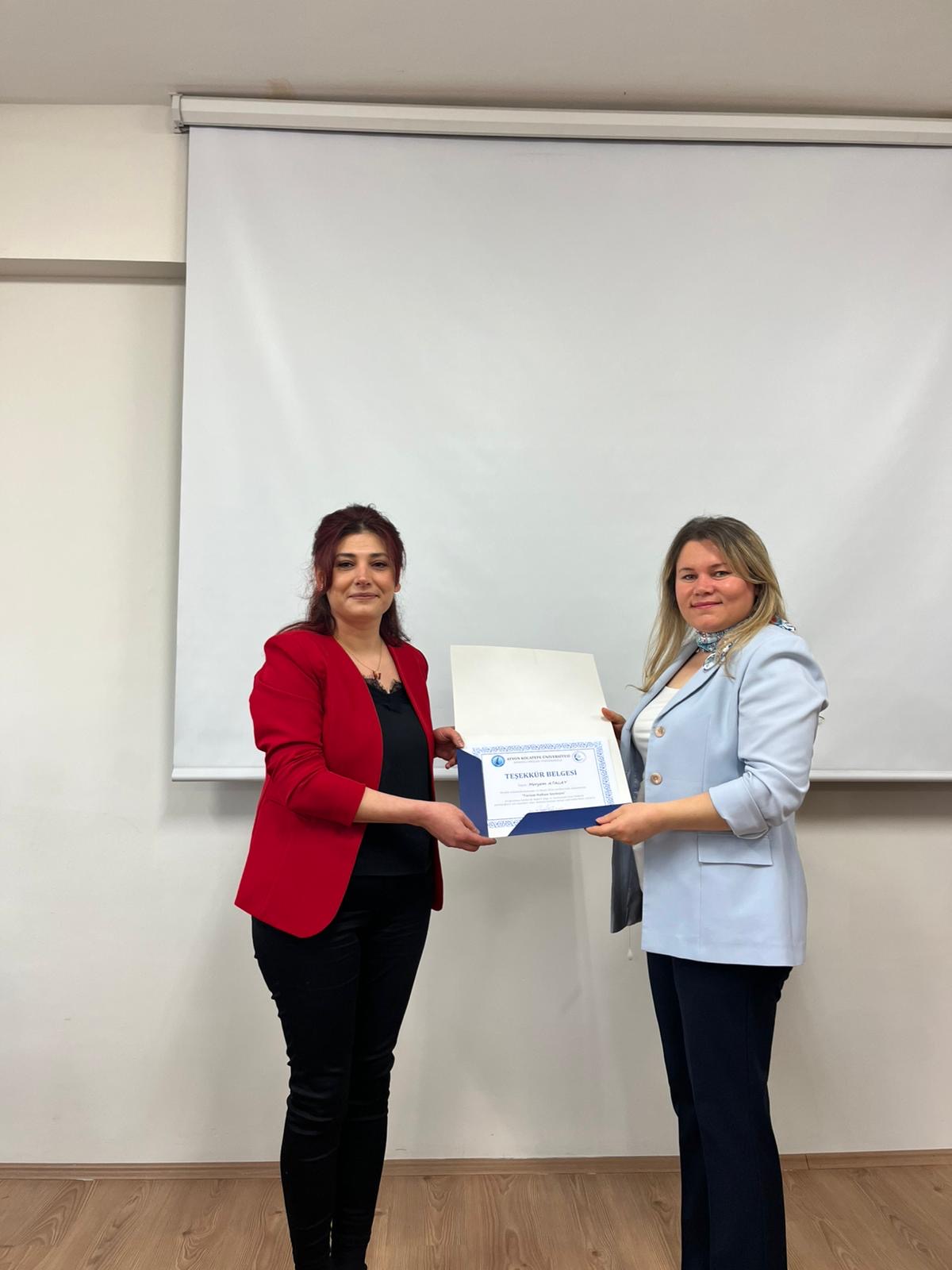 Söyleşi, Meryem Atalay’a teşekkür belgesi takdiminin ardından fotoğraf çekimiyle sona erdi.
