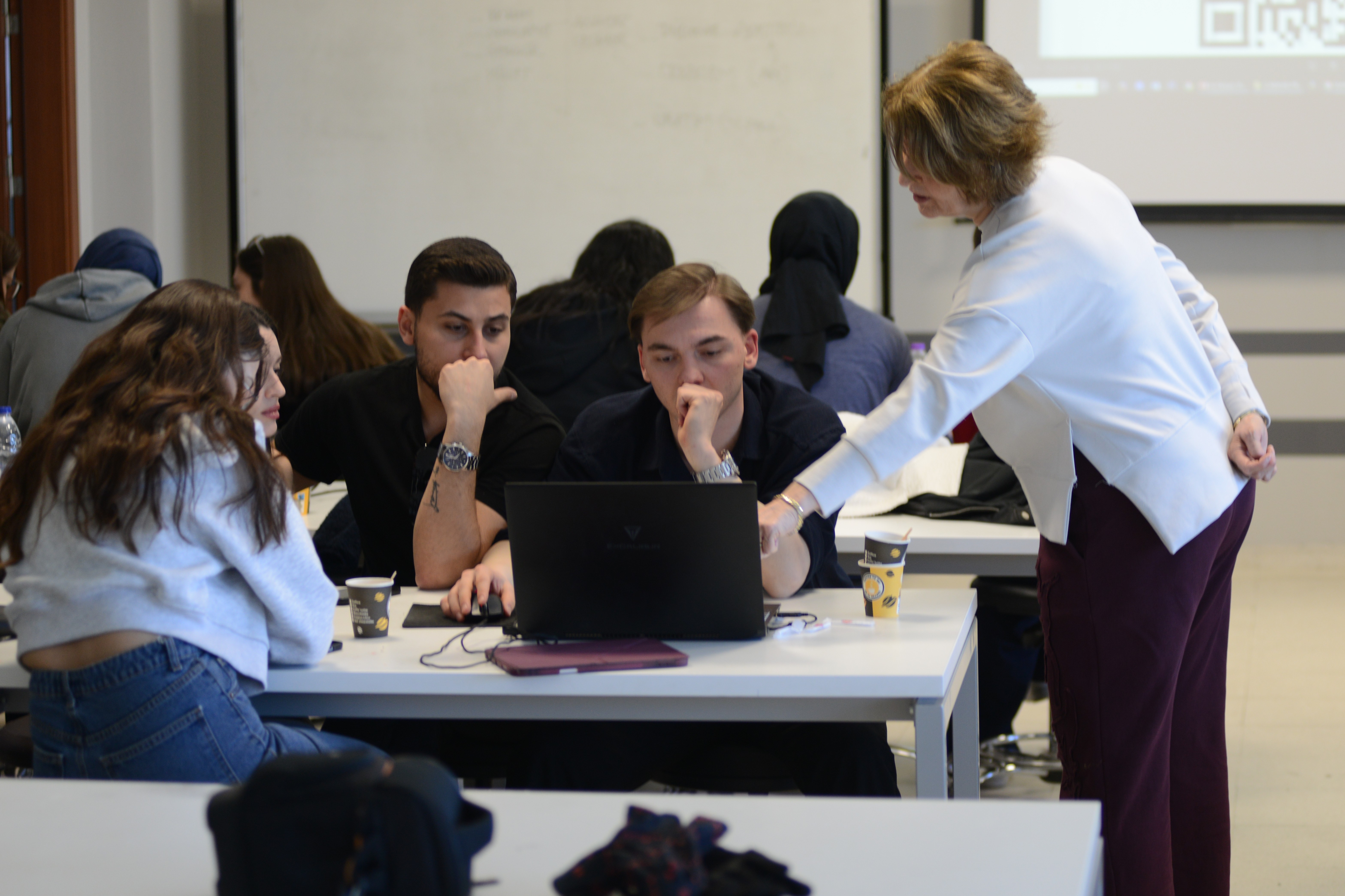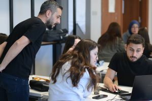 Moderatörlüğünü İç Mimarlık ve Çevre Tasarımı Bölümü Öğr. Gör. Fatih Mazlum’un yaptığı atölyede öğrencilerin bilgilendirilmesinin ardından İMÇT ve Sınıf Öğretmenliği öğrencilerinden karma şekilde oluşturulan gruplar, farklı yapay zekâ tabanlı sohbet robotları ve dil modelleri kullanarak temaya uygun afişler hazırladılar.