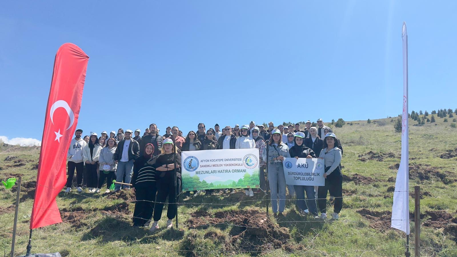 Afyon Kocatepe Üniversitesi (AKÜ) Sandıklı Meslek Yüksekokulu (MYO), Sandıklı Orman İşletme Müdürlüğü ve AKÜ Sürdürülebilirlik Topluluğu iş birliği ile “Geleceğe Nefes: Bir Mezun Bir Fidan” etkinliği düzenlendi.