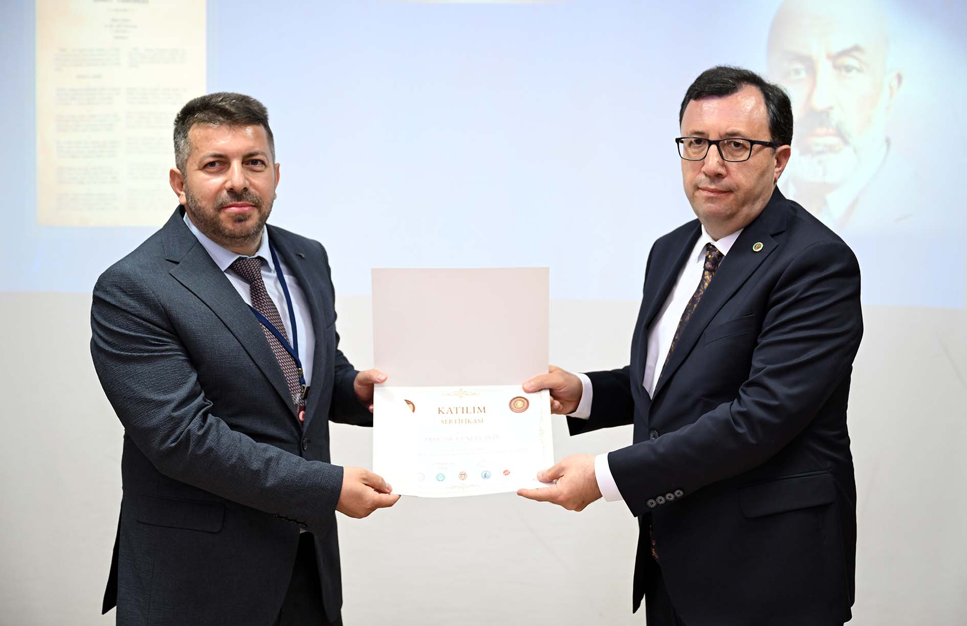 Fen Edebiyat Fakültesi Çağdaş Türk Lehçeleri ve Edebiyatları Bölüm Başkanı Prof. Dr. Cüneyt Akın “Mehmet Akif’te Azim-Kararlılık- Gayret ve Milli Mücadelenin Manevi Cephesinin İnşası” konulu sunumunda; “Manevî cephe” kavramının, Millî Mücadele döneminde yalnızca askerî bir zafer olmadığını; aynı zamanda bir ruh, bir inanç ve bir birlik mücadelesi olduğunu gösterdiğini ifade etti. Akın,  “Bu cephenin en güçlü temsilcilerinden biri de, millî mutabakat metnimiz olan İstiklal Marşı’nı kaleme alan Mehmet Akif Ersoy’dur. Onun ortaya koyduğu fikirler, milletin ortak değerlerde birleşmesini sağlamış ve manevî direnci güçlendirmiştir” dedi.