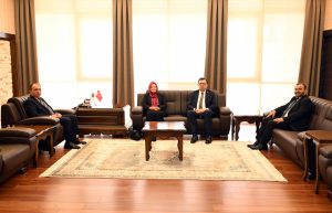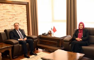 Etkinlik öncesinde YÖK Yürütme Kurulu Üyesi ve ASBÜ Rektör Yardımcısı Prof. Dr. Münire Kevser Baş, TBMM Genel Sekreter Yardımcısı Naim Çoban ve Proje Koordinatörü ASBÜ Öğr. Gör. Dr. Gazi Doğan AKÜ Rektörü Prof. Dr. Mehmet Karakaş’ı makamında ziyaret etti.