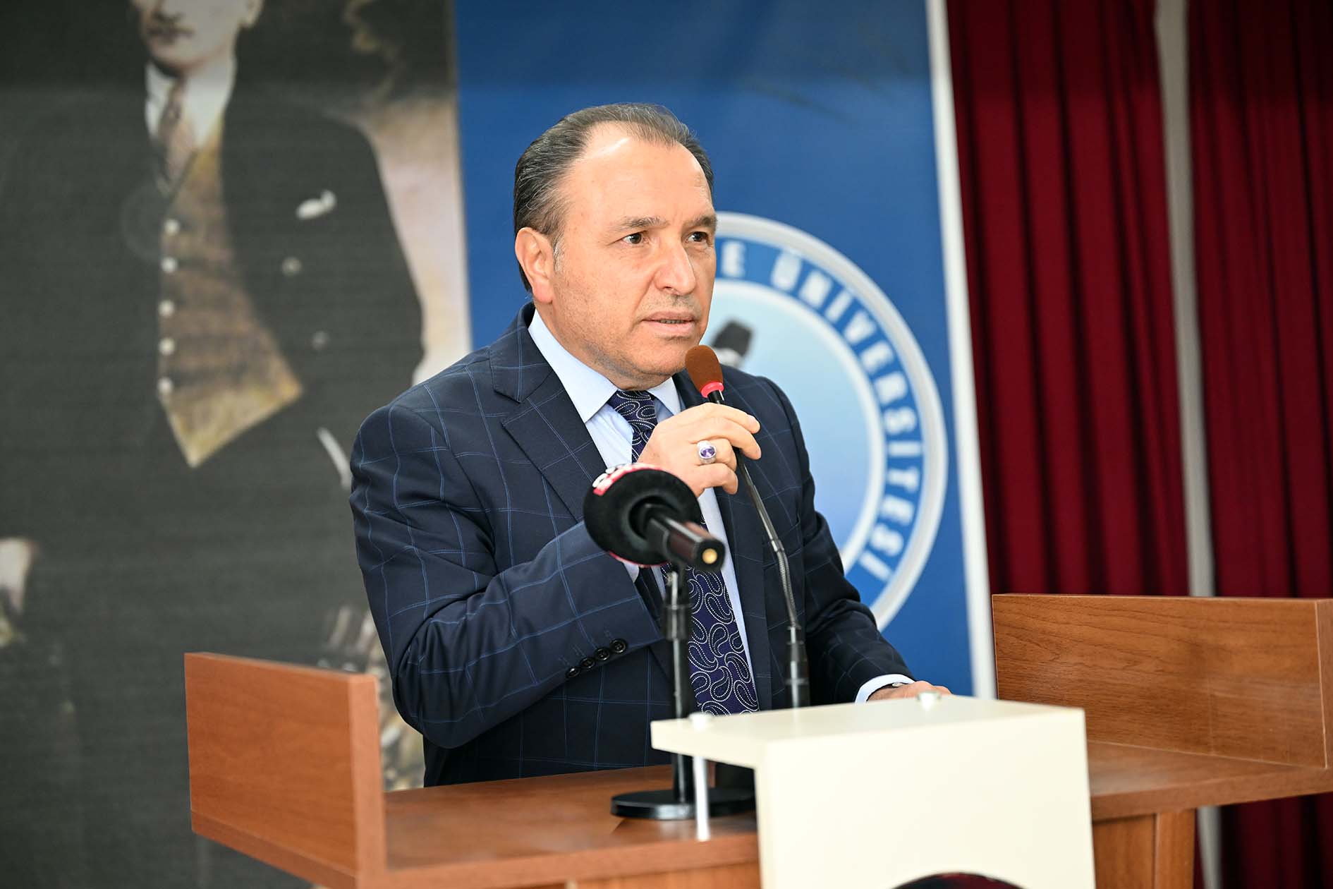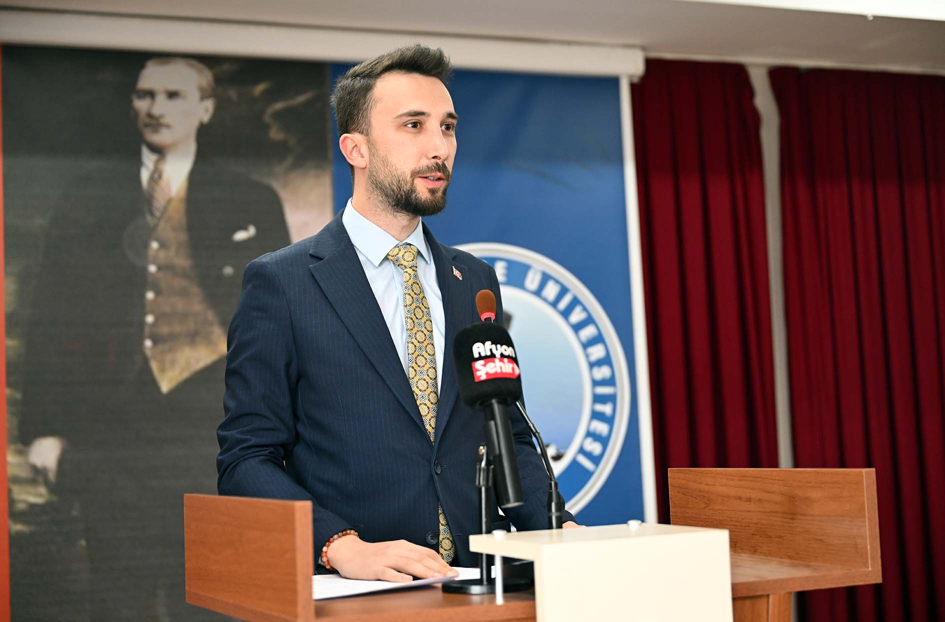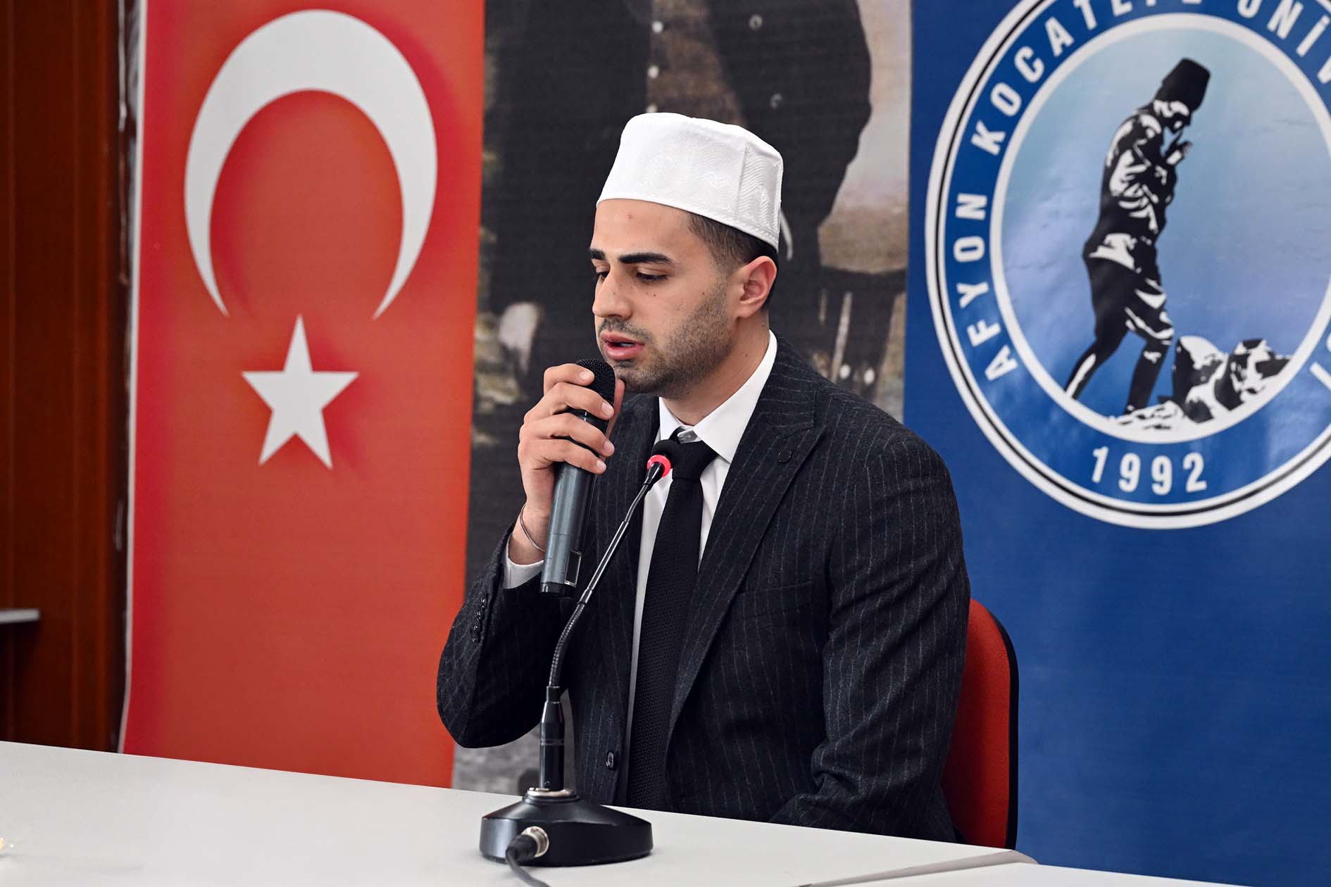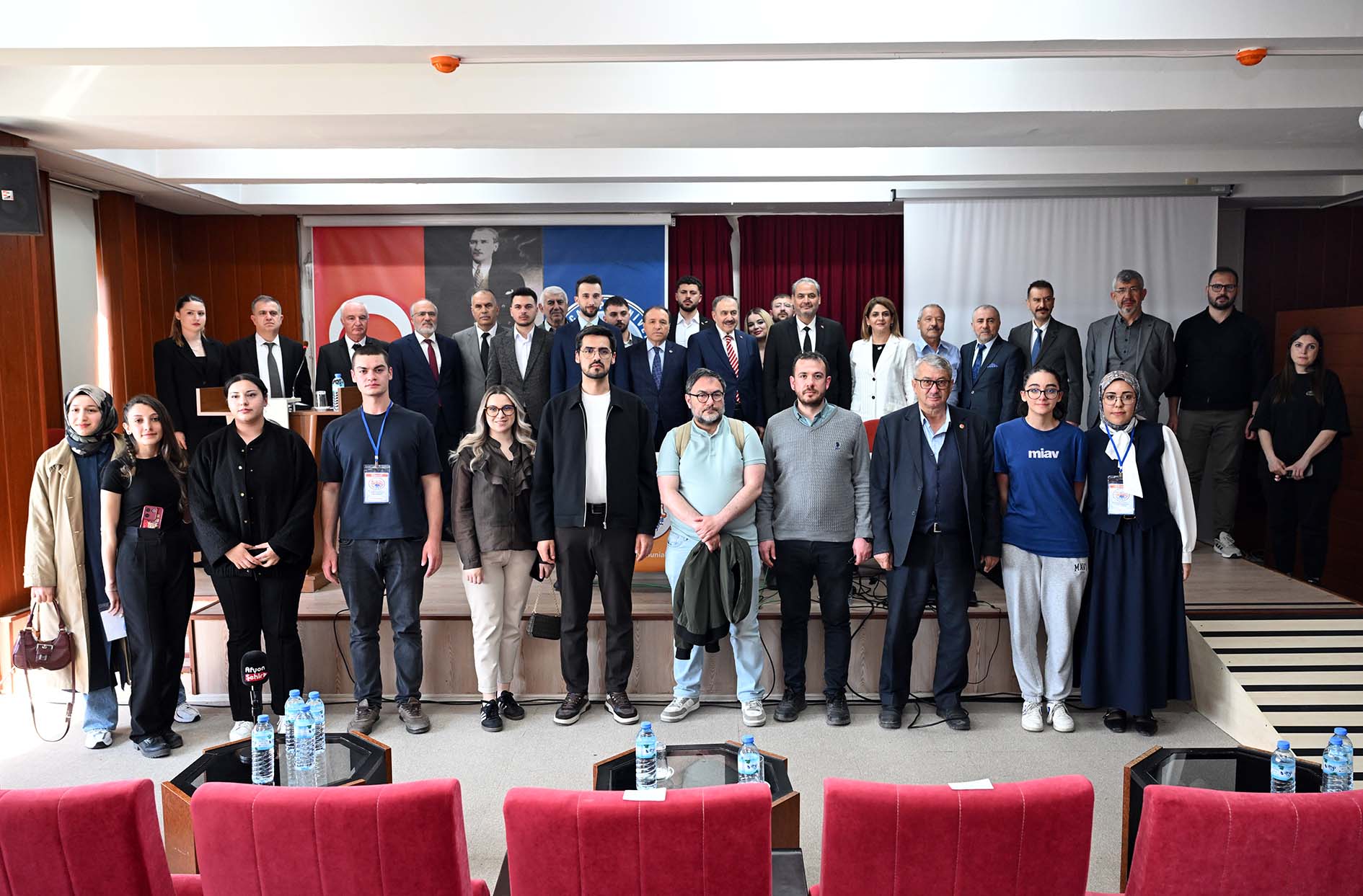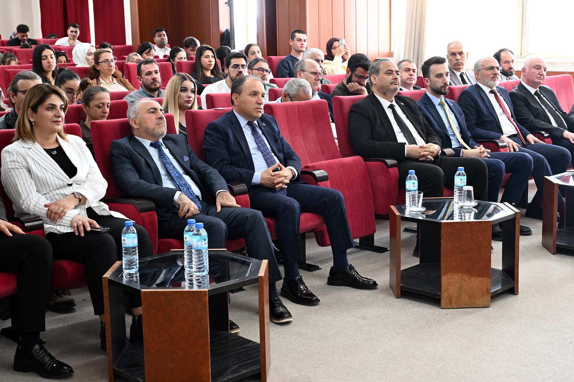Erdal Akar Konferans Salonunda Eski Orman ve Su İşleri Bakanı, Cumhurbaşkanlığı Irak Özel Temsilcisi Prof. Dr. Veysel Eroğlu’nun konuşmacı olarak yer aldığı konferansa; AKÜ Rektörü Prof. Dr. Mehmet Karakaş, Afyonkarahisar Sağlık Bilimleri Üniversitesi Rektörü Prof. Dr. Âdem Aslan, AKÜ Rektör Yardımcıları; Prof. Dr. Şuayıp Özdemir ve Prof. Dr. Murat Peker, Fen Edebiyat Fakültesi Dekanı Prof. Dr. Hüseyin Koçak, AK Parti İl Gençlik Kolları Başkanı Mehmet Emin İntepe, AK Parti Afyonkarahisar Kadın Kolları Başkanı Hülya Kalaycı, AK Parti Afyonkarahisar İl Başkan Yardımcısı Mehmet Yaşar Öndüç, ÜNİAK Başkanı Yusuf Öztürk ile birlikte akademik personel ve öğrenciler katıldı.