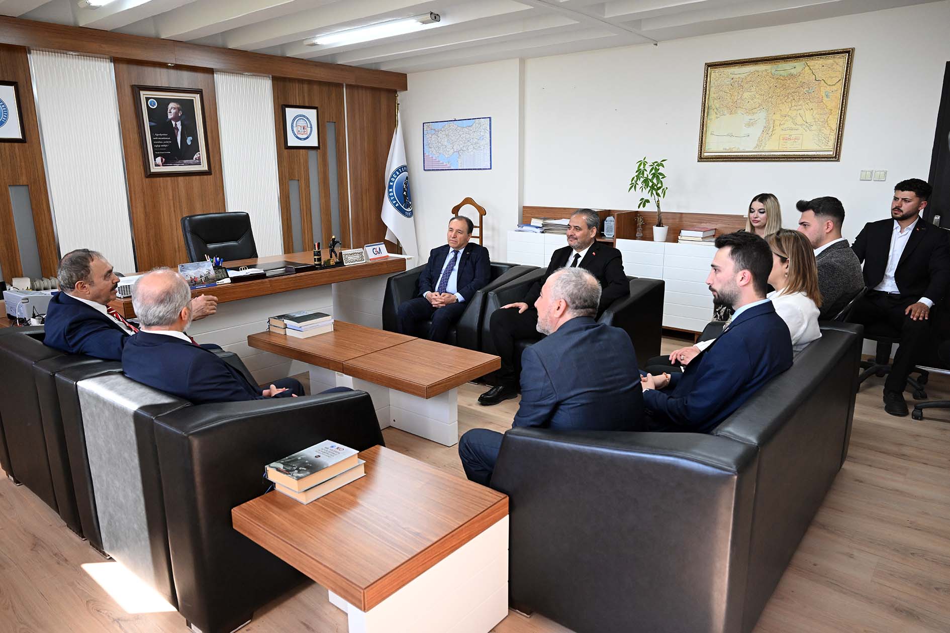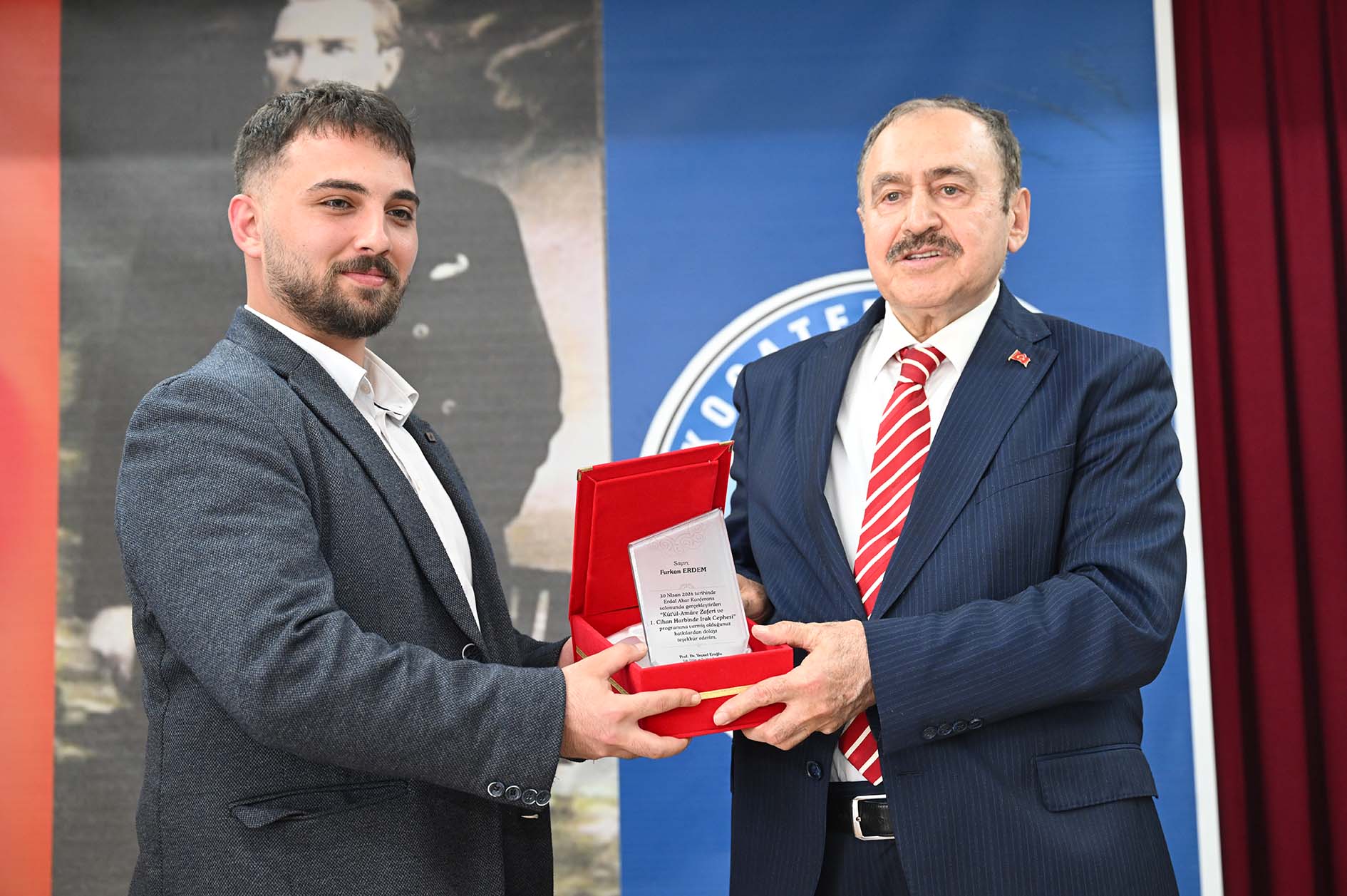 Konferans öncesi ise Eski Orman ve Su İşleri Bakanı, Cumhurbaşkanlığı Irak Özel Temsilcisi Prof. Dr. Veysel Eroğlu, AKÜ Rektörü Prof. Dr. Mehmet Karakaş’ı makamında ziyaret etti.